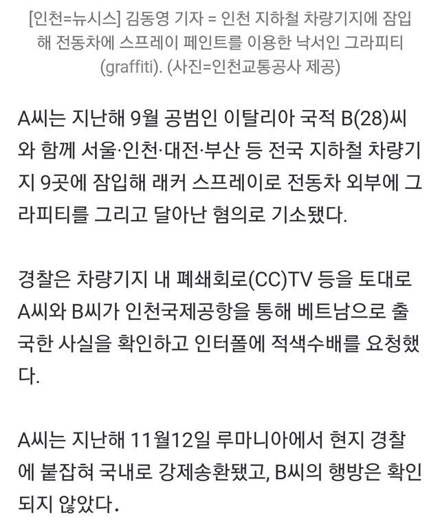 전국 지하철역에 몰래 잠입 후 그라피티 낙서 후 출국 도주