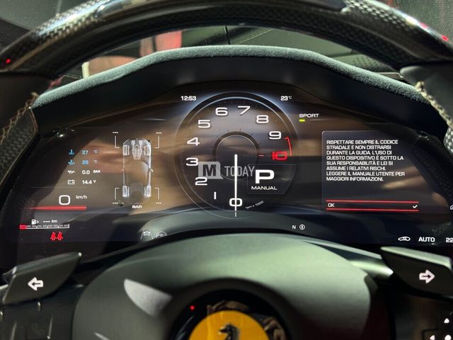 12실린드리의 엔진은 페라리의 상징적인 V12의 최신 버전으로 830cv의 힘을 발휘하며 최대회전수는 9,500rpm까지 올라간다. 이 엔진은 매우 인상적인 출력 곡선을 보여주고 있는데, 단 2,500rpm에서 전체 토크 중 이미 80%를 사용할 수 있다. 그 결과 가속 페달을 밟을 때 운전자의 조작에 매우 즉각적으로 반응하고 레드라인(최대 RPM)까지 끊임없는 파워를 느낄 수 있다.