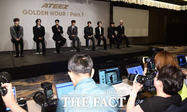 [더팩트ㅣ이새롬 기자] 에이티즈 윤호, 성화, 산, 여상, 홍중, 우영, 종호, 민기(왼쪽부터)가 30일 오후 서울 종로구 포시즌스 호텔 서울에서 열린 미니 10집 '골든 아워 파트 1(GOLDEN HOUR : Part.1)' 기자간담회에서 취재진 질의에 답하고 있다.