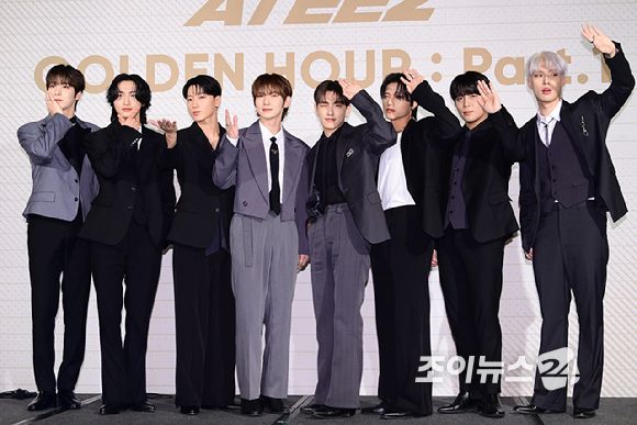 그룹 에이티즈(ATEEZ: 윤호, 성화, 산, 여상, 홍중, 우영, 종호, 민기)가 30일 오후 서울 광화문의 한 호텔에서 미니 10집 '골든 아워 : 파트 1(GOLDEN HOUR : Part.1)' 타이틀곡 '워크(WORK)' 발매 기념 기자간담회를 개최했다.