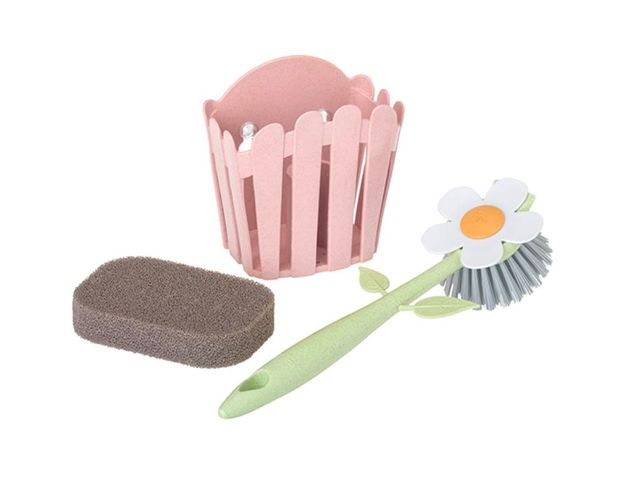 플로가닉 싱크사이드 세트를 두면 돼요. 꽃이 달린 브러쉬와 흙을 연상시키는 수세미가 완벽한 한 쌍을 이루네요. 자연 소재의 바이오플라스틱으로 만들어져 친환경적이기까지 한 이 제품의 가격은 2만8천원.