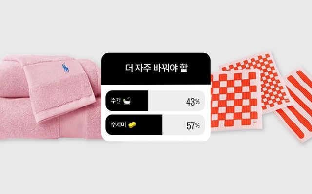 〈엘르 데코〉 인스타그램 팔로워에게 물었습니다. 43%가 수건에, 57%가 수세미에 투표했네요.