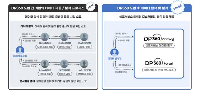DP360은 데이터 카탈로그 솔루션인 ‘DP360 Catalog’와 데이터 분석 환경을 제공하는 포털 솔루션 ‘DP360 Portal’으로 구성된다.