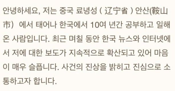 또한 중국 전통 옷을 입고 한국 궁에 온다는 행위 또한 중국 한복과 한식 한복의 문화 교류를 위함임을 밝힌 그는 "이번에는 제 의도가 전달되지 않았다"며 본의가 아니었음을 강조했다.