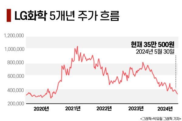 LG화학의 주가가 연일 최저가를 경신하고 있는 가운데 LG에너지솔루션 지분을 매각해 현금을 확보할지 여부가 주목된다.