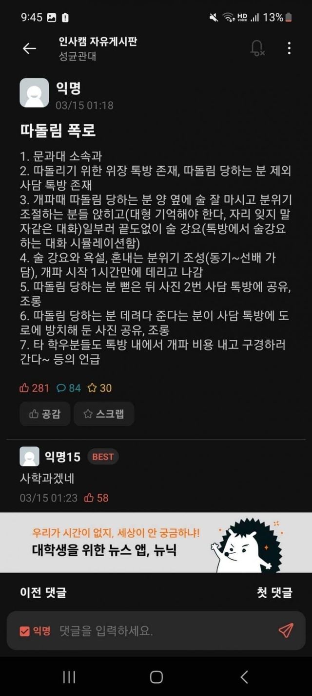 일진 여고딩 참교육 해준 썰