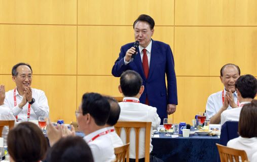 윤 대통령은 이날 “오늘 여러분 보니까 정말 스트레스가 풀리고 힘이 난다”고 했다.