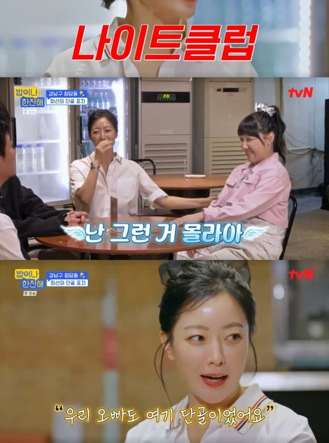 영훈이 김희선에게 “클럽 재밌었냐”고 묻자 김희선은 “나는 그런거 잘 모른다”며 선을 그었다. 이어 김희선은 “남편도 단골이었다. 결혼 후 둘이 같이 왔는데 주인 할머니가 ‘둘이 결혼한 거냐’고 물었다”고 덧붙였다.