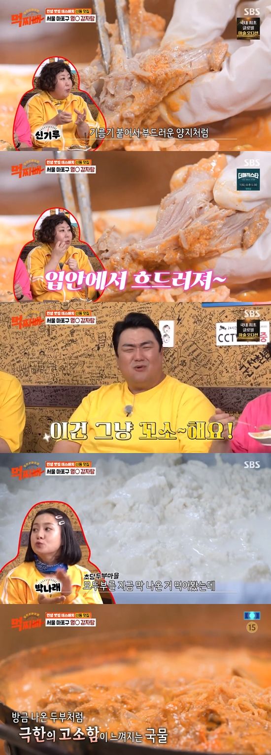 신동은 "이 집 감자탕은 콩을 갈아 넣어서 국물이 걸쭉하다"고 소개하며 기대감을 높였다.