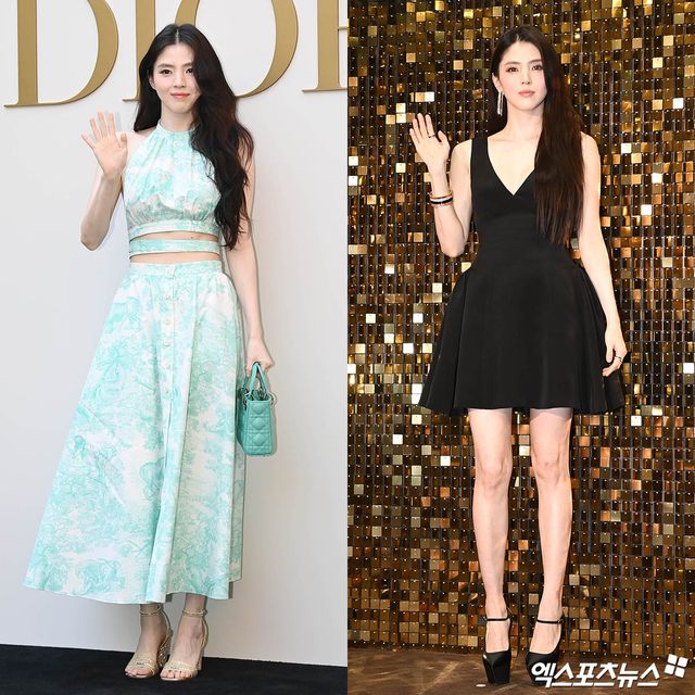 한소희는 가슴 라인이 깊게 파인 심플 블랙 미니 원피스를 입고 등장해 고혹적이면서도 섹시한 매력을 뽐냈다. 엄청난 높이의 가보시 킬 힐이 각선미를 돋보이게 만들었고, 볼드한 주얼리가 우아함을 더했다.