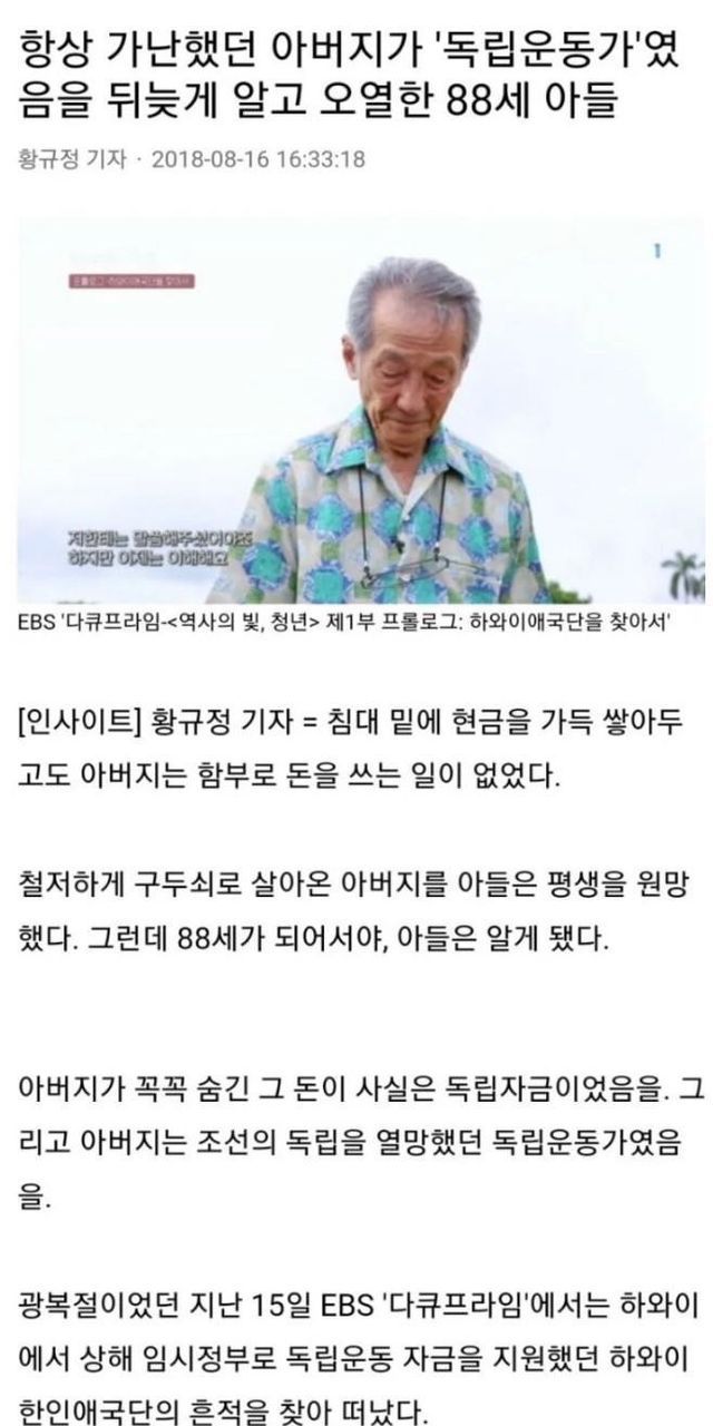 가난한 아버지가 독립운동가였음을 안 아들 …