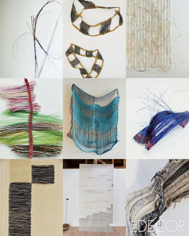 자신의 직조 작품과 함께 선 네덜란드 아티스트 마리안느 켐프.