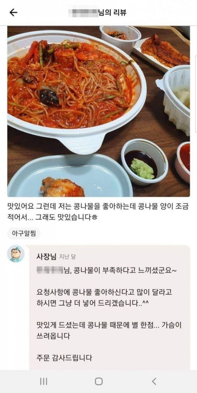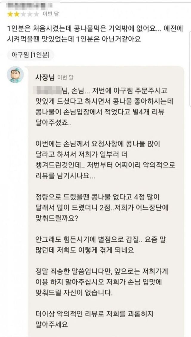 콩나물 적다고 4점 줌