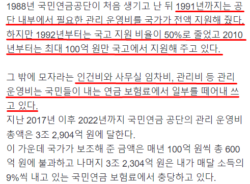 그 비용이 줄어드니까 이제 국민연금에서 메꾸고있음