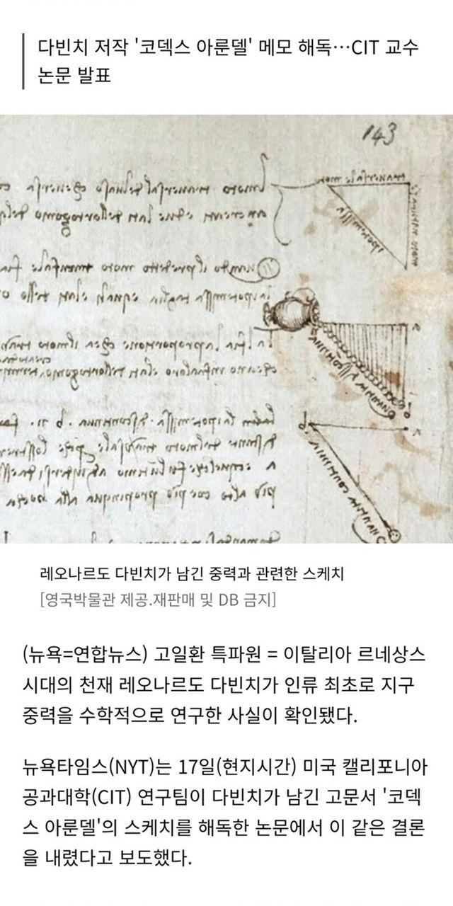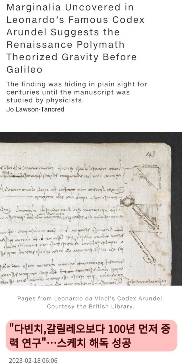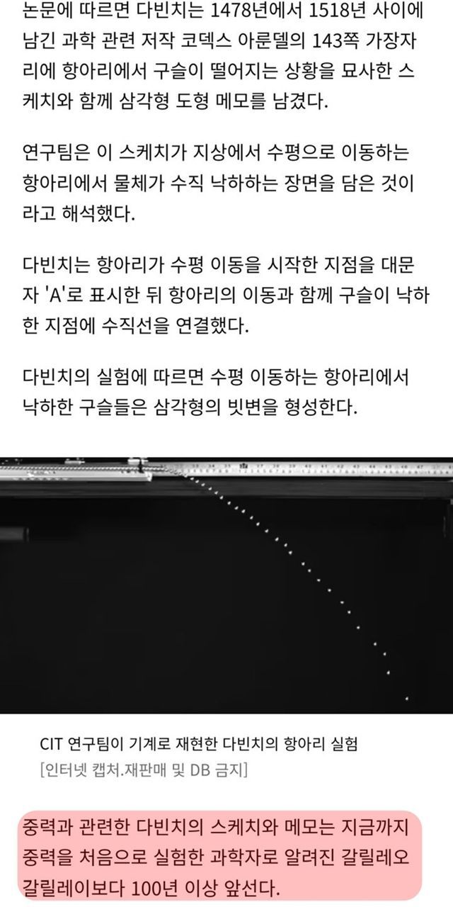 중력 실험의세계 최초선구자로 ‘레오나르도 다빈치’가 추가되어 들어갈 예정.