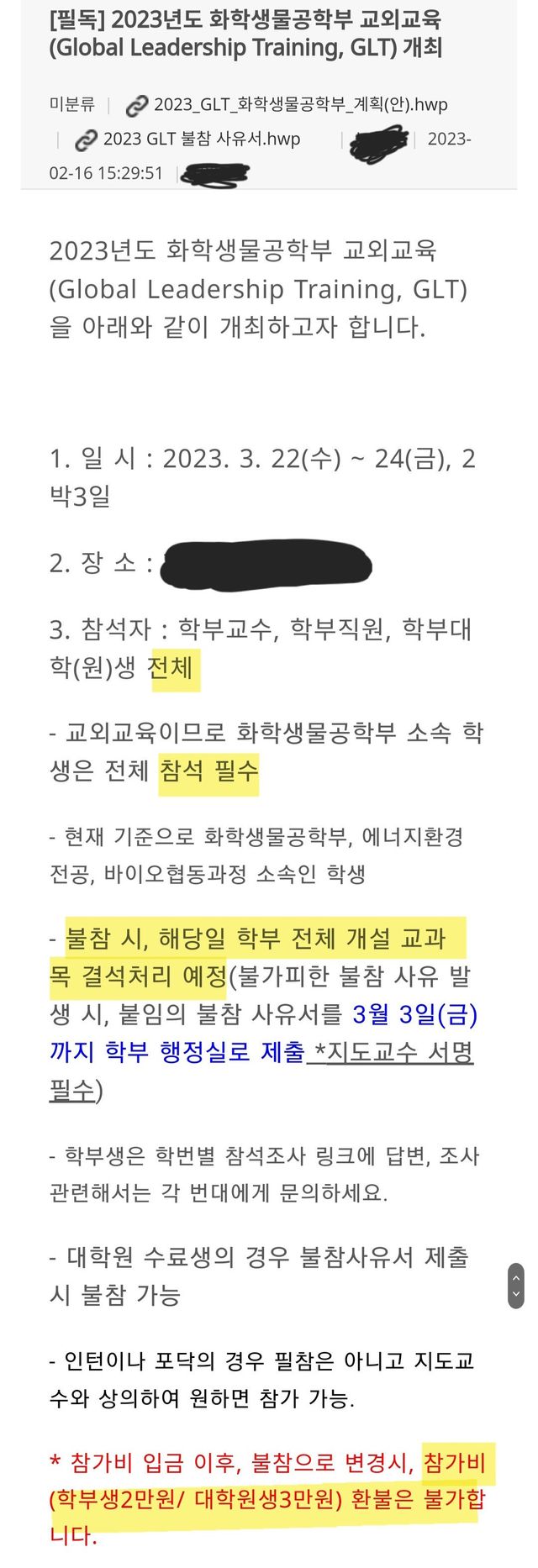 학과 전체 필참 엠티ㄷㄷ