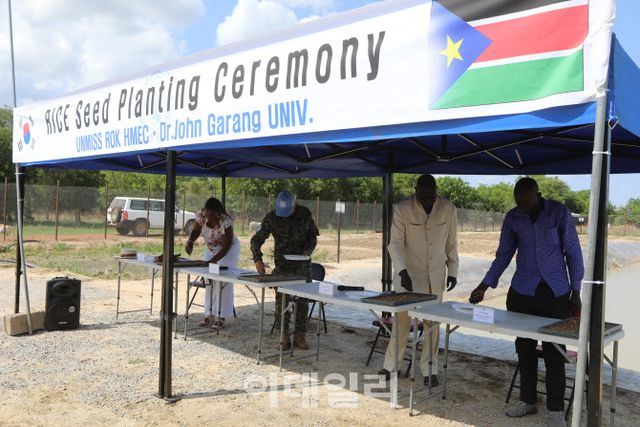이에 따라 2022년부터 파병 준비 기간 중 일부 부대원은 농촌진흥청 지원으로 벼농사 교육을 받고 있다. 지난해 7월에는 벼 시험 재배를 위해 존가랑 대학교와 업무협약을 체결하고 10월부터 남수단에서 최초로 모내기 방법을 적용한 벼농사를 시작했다.