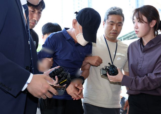 서울 수서경찰서는 31일 오전 7시45분께 서초구 남태령역 인근에서 60대 남성 A 씨를 살인 혐의로 긴급체포했다. 검거된 지 3시간15분 만인 오전 11시께 경찰서에 도착한 A씨는 검정색 모자를 쓰고 흰색 마스크를 착용한 채 호송차에서 내렸다.