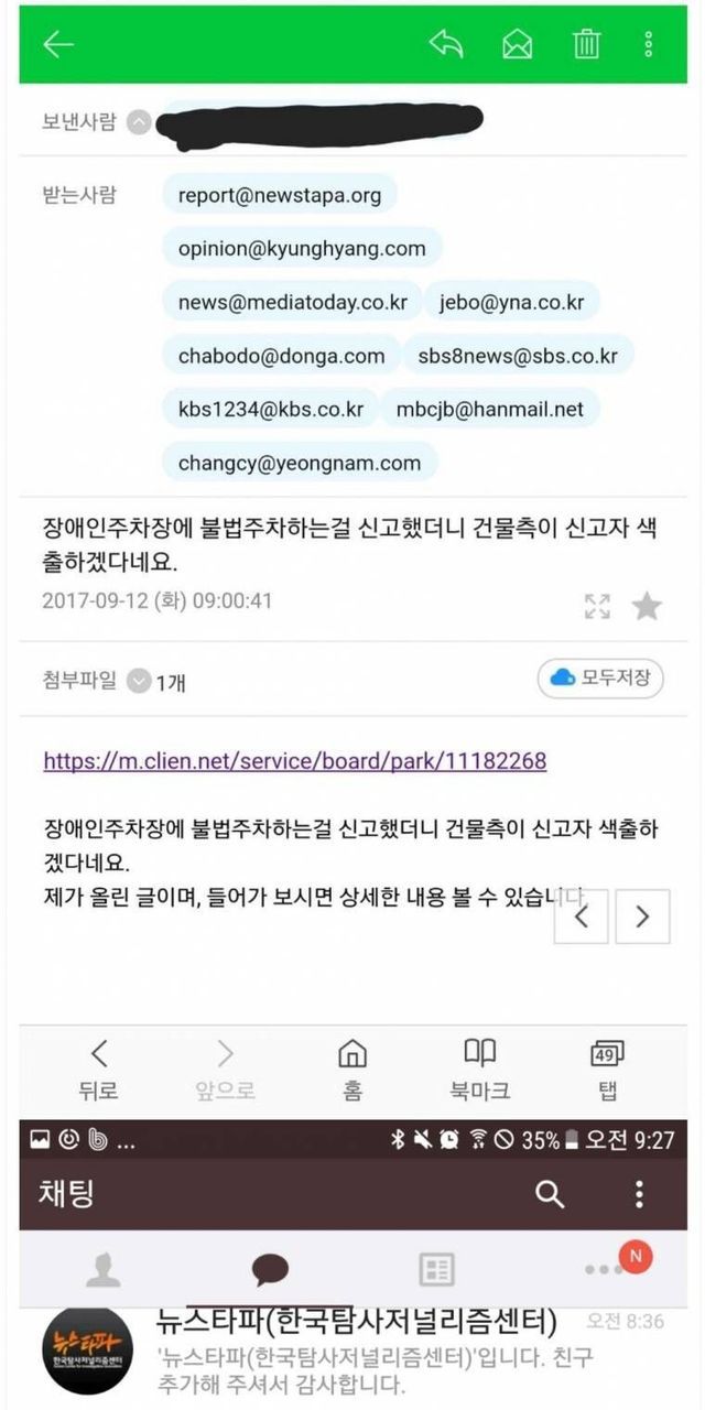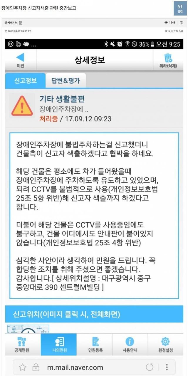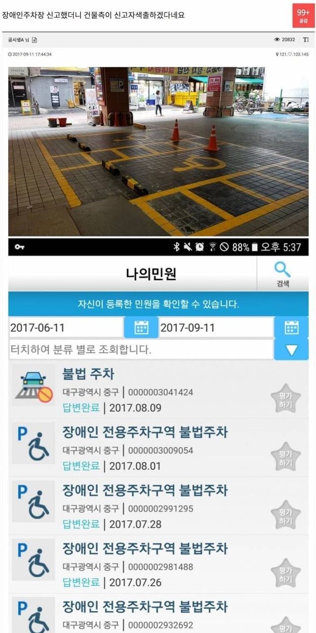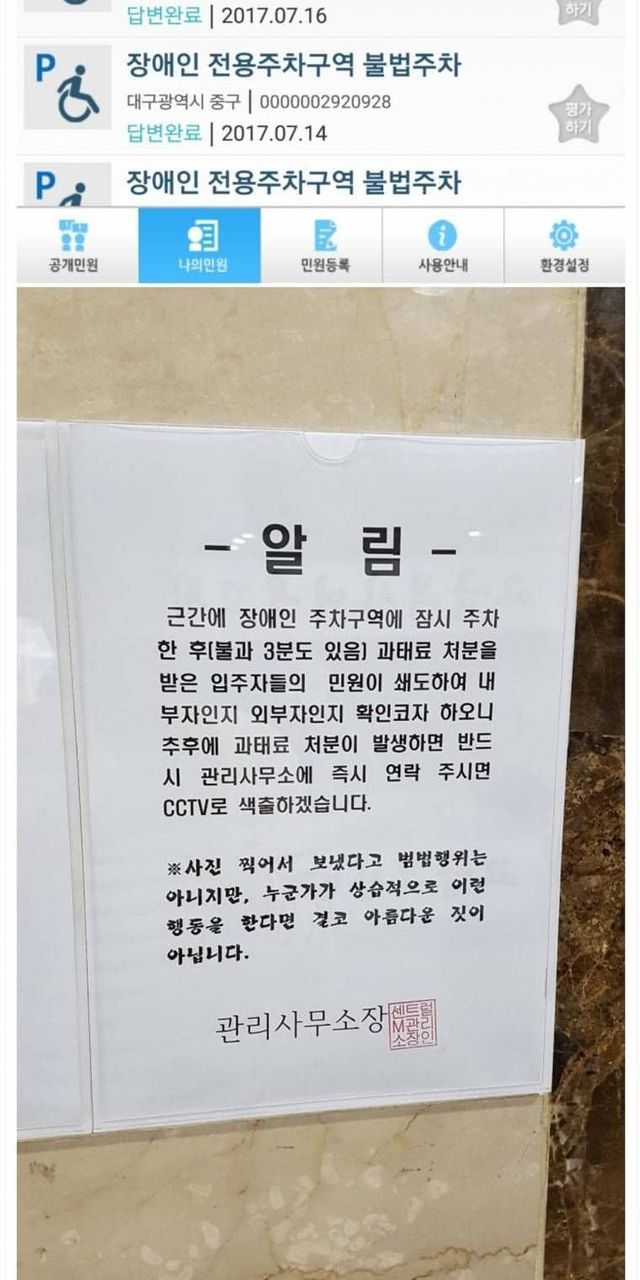 ???:장애인 주차장 신고자 색출하겟습니다..