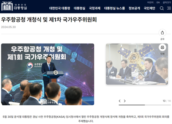 아울러 우주항공청이 출범한 5월 27일을 국가기념일인 ‘우주항공의 날’로 지정해, 국민과 함께 우주 시대의 꿈을 키우겠다고 다짐했다.