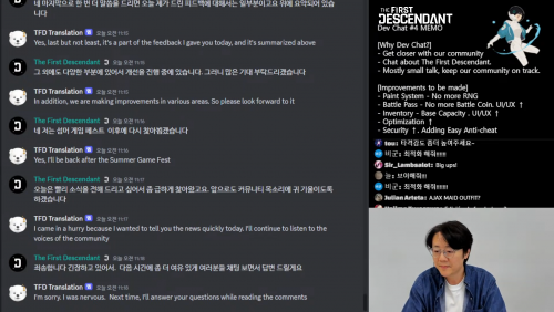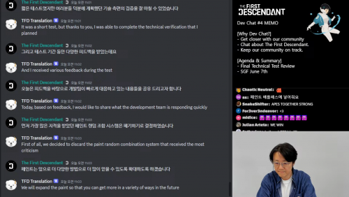 '퍼스트 디센던트' 이범준 PD는 31일 오전 11시 깜짝 라이브 방송을 진행해 파이널 테크니컬 테스트 관련 피드백과 개선점을 전달했다. 특히 파이널 테크니컬 테스트가 마무리 된 지 고작 4일 만에 지적받은 문제에 대한 피드백을 들고나와 큰 주목을 받았다.