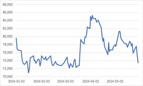 삼성전자 노조의 첫 파업 소식도 주가를 끌어내렸다. 삼성전자 최대 노조인 전국삼성전자노동조합(전삼노)은 29일 파업을 선언했다. 전삼노 조합원 수는 삼성전자 전체 직원의 22% 수준으로, 이들은 즉각적인 총파업에 나서진 않지만 연차 소진 등의 단체행동을 이어갈 계획이다.