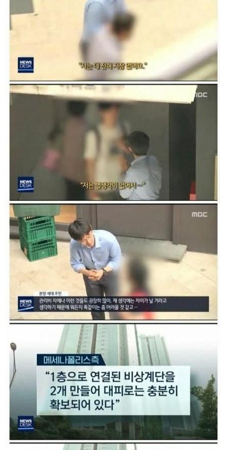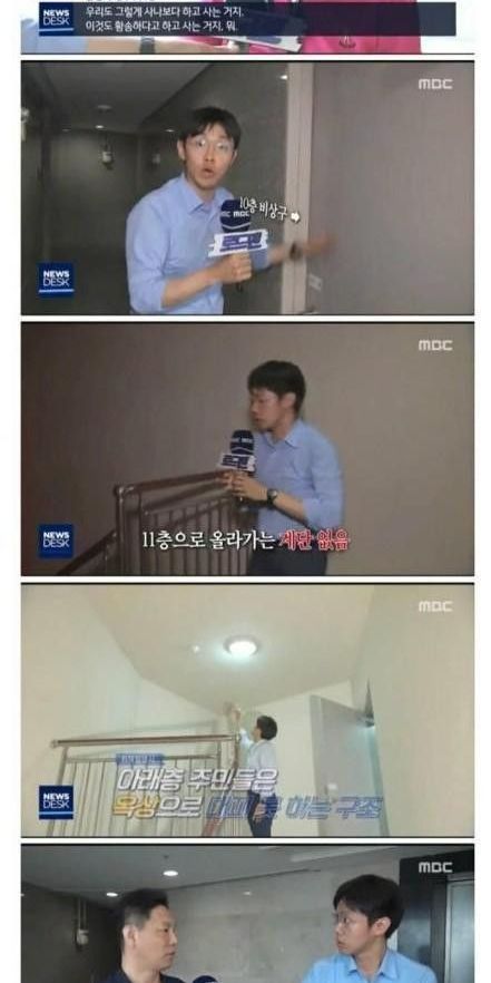 그래서 2~10층 사람들은 화재시 1층 비상계단 2개 다 막히면