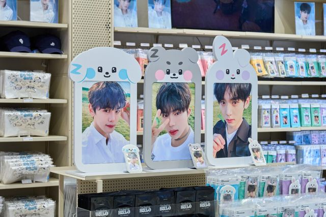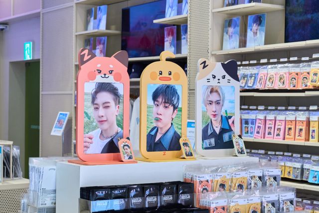 팝업스토어에는 제로베이스원 멤버들의 비주얼이 돋보이는 포토카드와 책받침, 포카 홀더부터 멤버들이 직접 그린 제로니가 프린트된 티셔츠, 볼캡까지 소장 욕구를 자극하는 아이템들로 가득했습니다. 더불어 제로베이스원의 결성 날짜가 적혀 있는 ‘정류장’ 콘셉트의 포토존, 화보 포스터가 시선을 사로잡았죠.