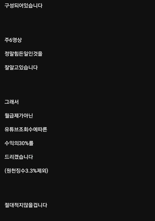 그래서 급여로 유튜브 조회수 수익 30%를 주기로 함