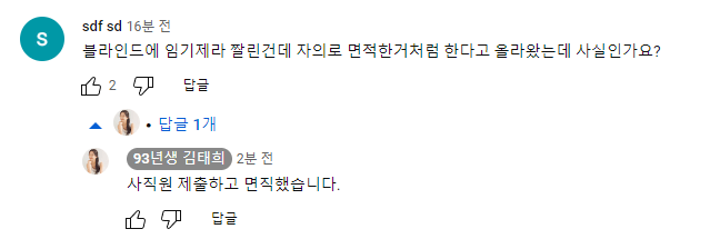 이미 유튜브에 누가 사실이냐고 물어봤는데 본인 댓글이 올라옴