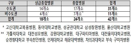 이 중 수도권은 상급종합병원 14개소, 종합병원 17개소 등 31개 병원, 비수도권은 상급종합병원 4개소, 종합병원 7개소 등 11개 병원이 선정됐다.
