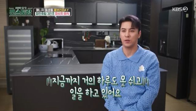 31일 방송된 KBS 2TV '신상출시 편스토랑'(이하 '편스토랑')에서는 장민호가 스케줄을 위해 나가기 전 생긴 휴식시간을 매니저들과 함께 즐기는 모습이 공개됐다.