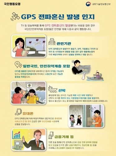 과기정통부는 GPS 전파혼신 위기경보 “주의” 단계를 유지하면서 국토부, 해수부 등 관계부처와 긴밀한 공조를 통해 실제 피해가 발생하지 않도록 항공기 지상항법시설・관성항법장비 사용, 선박 레이더・항로표지・지형지물 활용 등 예방조치를 수행하는 등 비상대비 체계를 운영하고 있다고 전했다.