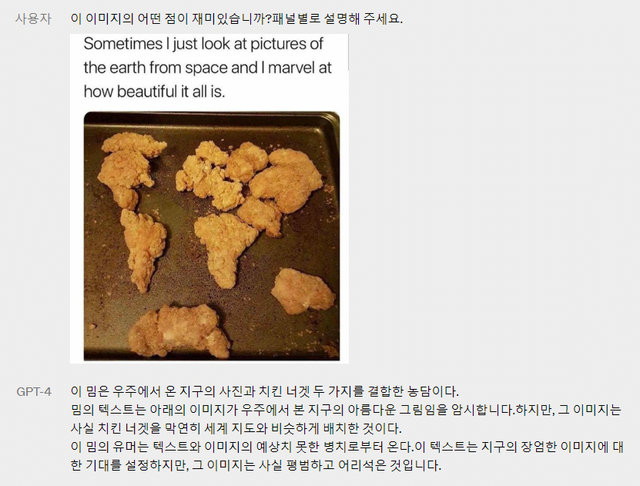 이미지를 인식하고 관련된 질문에 대답할 수 있음 (기존 GPT-3.5와 가장 큰 차이점)