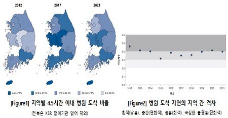 병원 도착 지연 시간의 지역별 격차는 지니계수가 0.3을 초과하는 수준으로 높은 불평등이 지속적으로 관찰됐다.