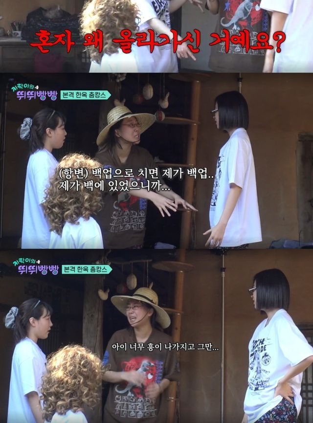 안유진은 “자꾸 혼자 튀려고 하네. 혼자 여기 가운데에 여기 올라가는게 어딨냐”고 이영지에게 화를 냈다. 이은지는 “원더걸스 네 명이 하나가 되어야 하는데 혼자 왜 올라가신 거냐”고 이영지에게 물었고 안유진은 “혹시 우리가 백업이냐. 멤버다”고 말했다.
