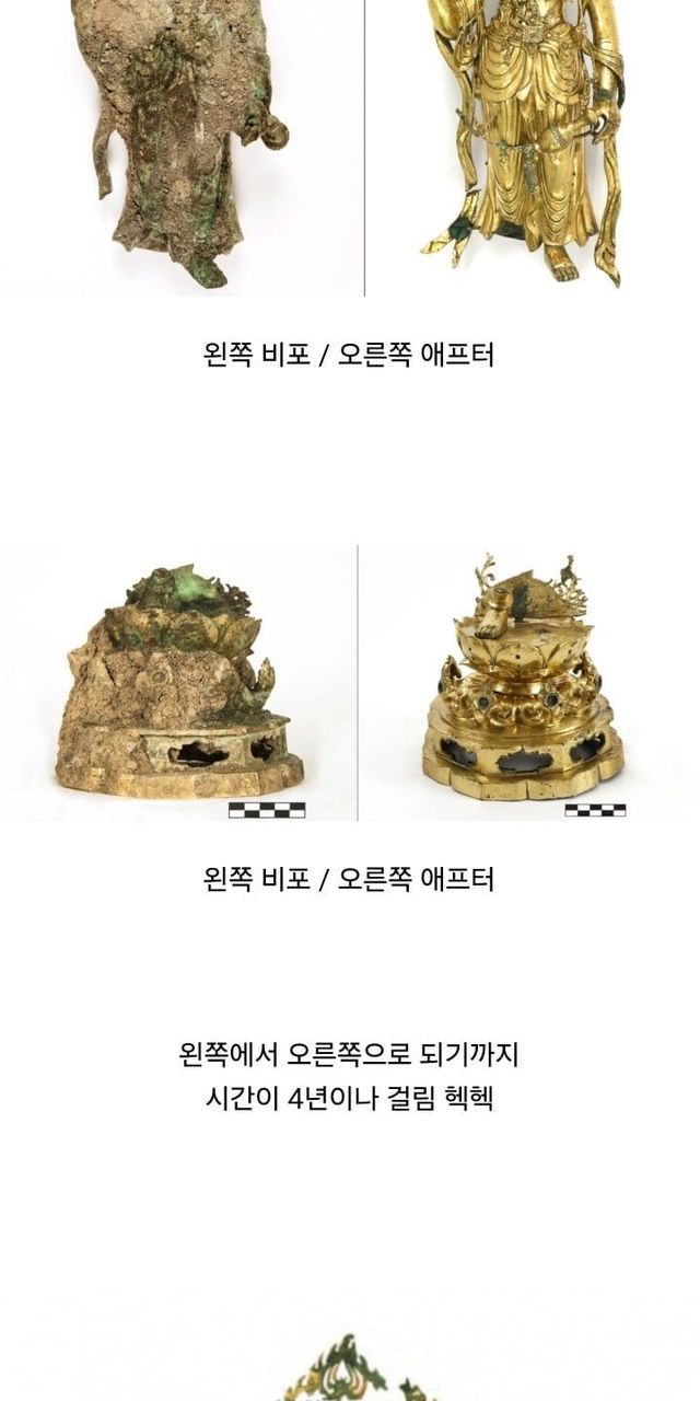 [스압] 금동상의 흙과 녹을 4년 동안 벗겨냈더니 드러난 모습