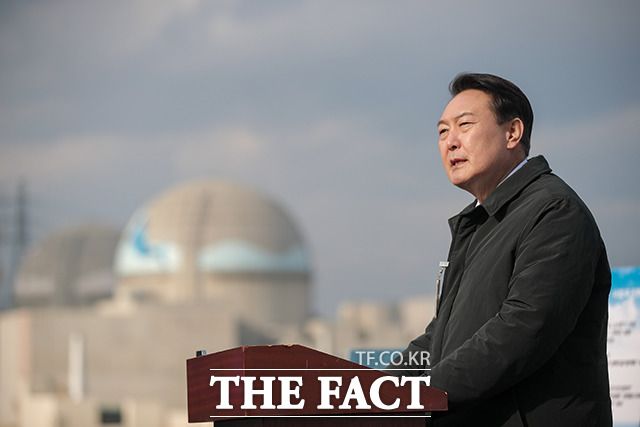 윤석열 정부의 두번째 전력수급기본계획(11차) 실무안이 31일 공개됐다. 사진은 윤석열 대통령이 대선 후보시절 경북 울진군 신한울 3·4호기 건설중단 현장을 방문한 모습. /윤석열 캠프 제공