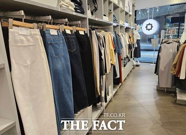 지난달 30일 신세계인터내셔날이 운영하는 패션잡화 브랜드 자주 합정메세나폴리스점에 '와이드 핏', '테이퍼드 핏' 등 바지 제품이 진열돼 있다. /우지수 기자