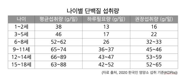 단백질은 성장기 어린이와 청소년에게 필수적인 영양소로, 근육 발달과 전반적인 성장에 중요한 역할을 한다. 그러나 과도한 단백질 섭취는 여러 건강 문제를 야기할 수 있다. 한국영양학회는 연령에 따라 적절한 단백질 섭취량을 권장하고 있으며, 이를 초과할 경우, 특히 동물성 단백질의 과다한 섭취는 신체에 부담을 줄 수 있다고 경고한다.