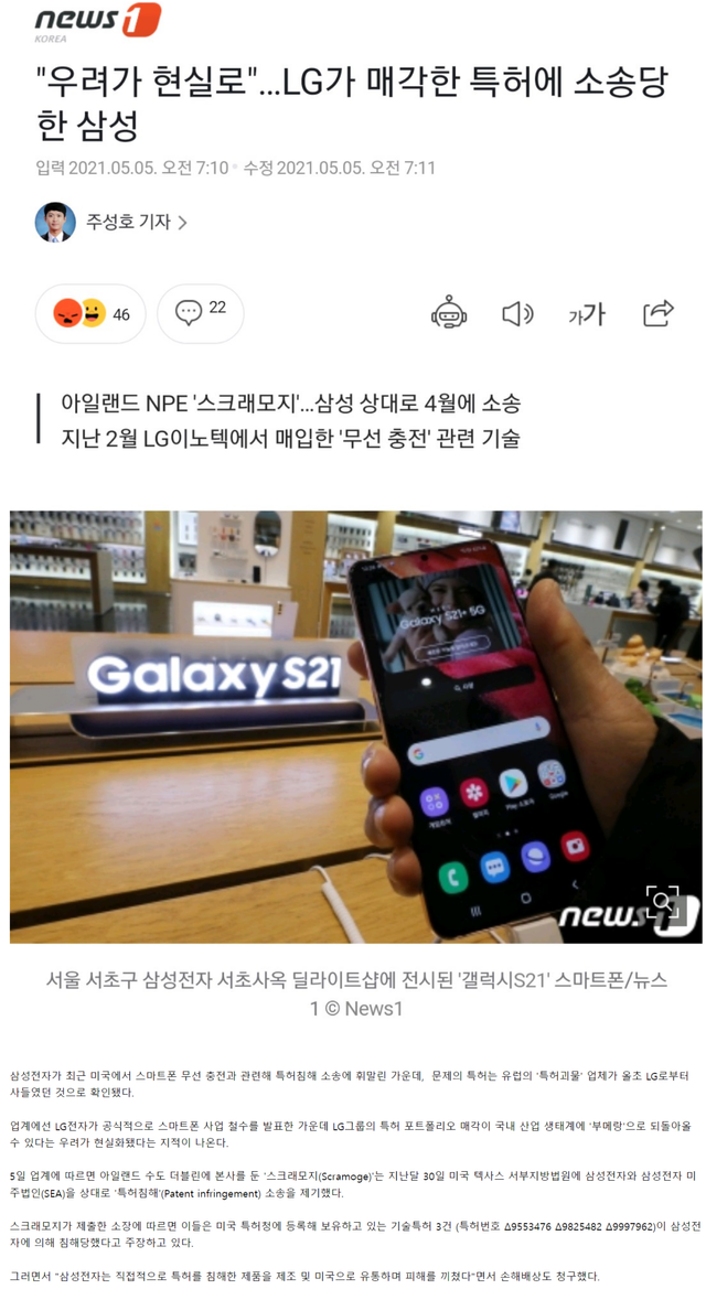 그래서 LG랑 이 기술을 돈 주고 샀던 외국업체들이 삼성 상대로 소송을 제기함