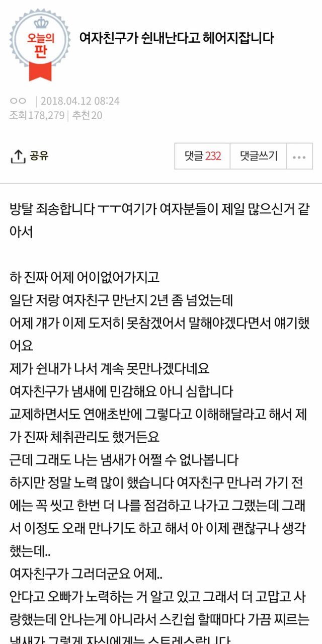 꿀잼 여자친구가 쉰네난다고 헤어지잡니다