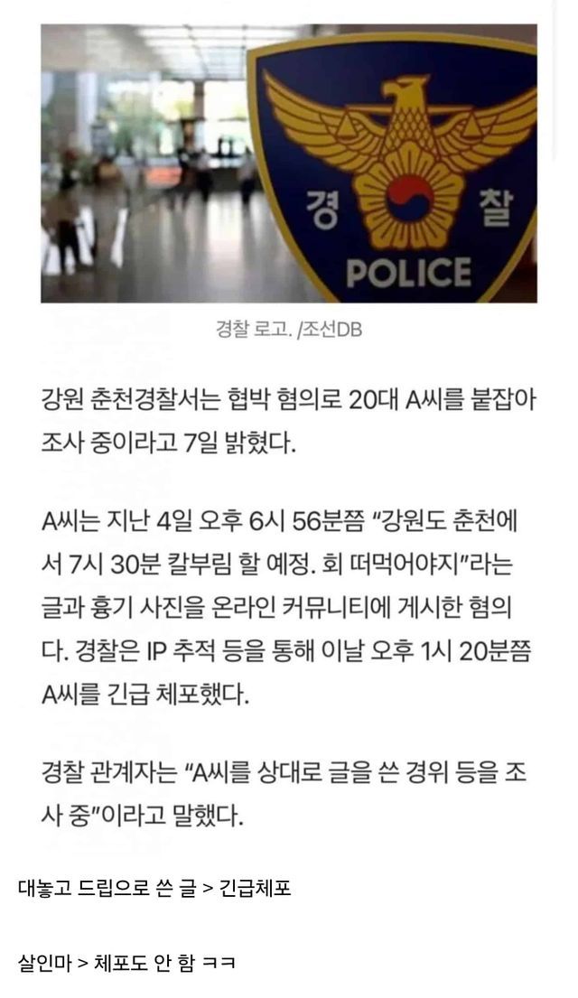 출처 : 싱글번글 긴급체포 올타임 레전드