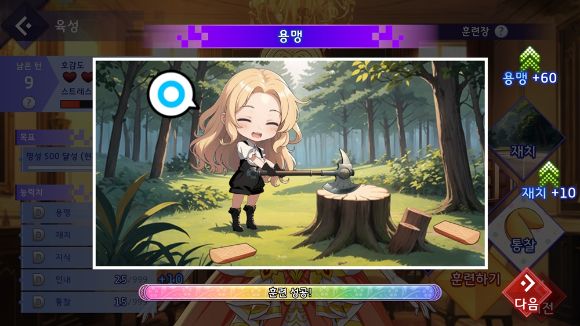 최적의 루트대로 육성을 마치면 최종 턴에 이르러 E부터 S까지 성적을 부여받게 된다. 물론 생각없이 아무렇게 훈련하면 낙제점을 받고 만다. 엘리자베스와 오필리어는 성격과 반응이 전혀 달라 서로 다른 경험을 선사하기도 한다.