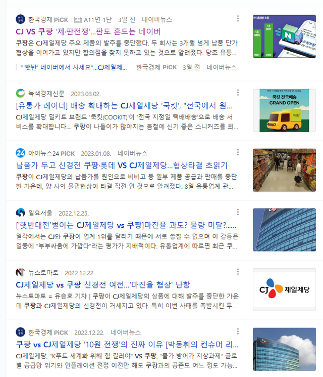 쿠팡 vs CJ가 지금 3개월째 신경전 중인데