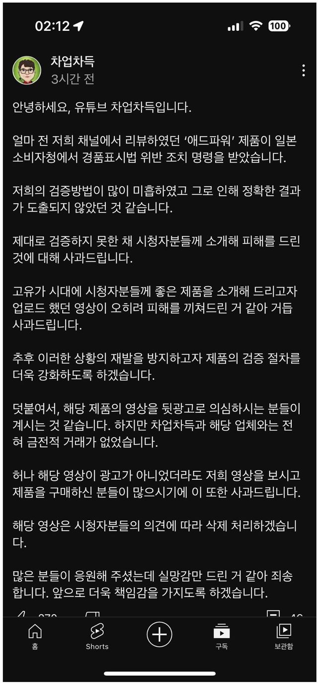 이전에 영상 올렸던 대형 유튜버는 검증 방법이 많이 미흡했다고 잘못 인정