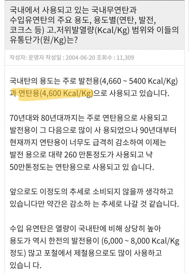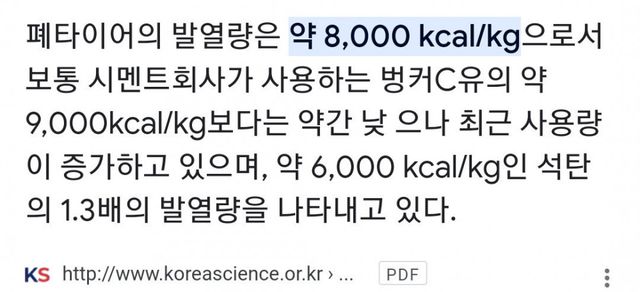 타이어가 1급 석탄보다 훨씬 열량 높음