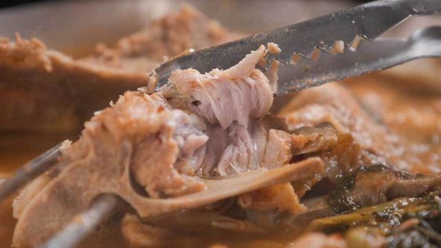 엄마표 감자탕을 만들기 위해서는 핏물을 뺀 돼지 등뼈를 10분 정도 초벌로 삶아 깨끗하게 헹궈준다. 이후 압력솥에 넣고 물을 등뼈 높이만큼 맞춰준다. 물과 등뼈는 1:1 비율이다.