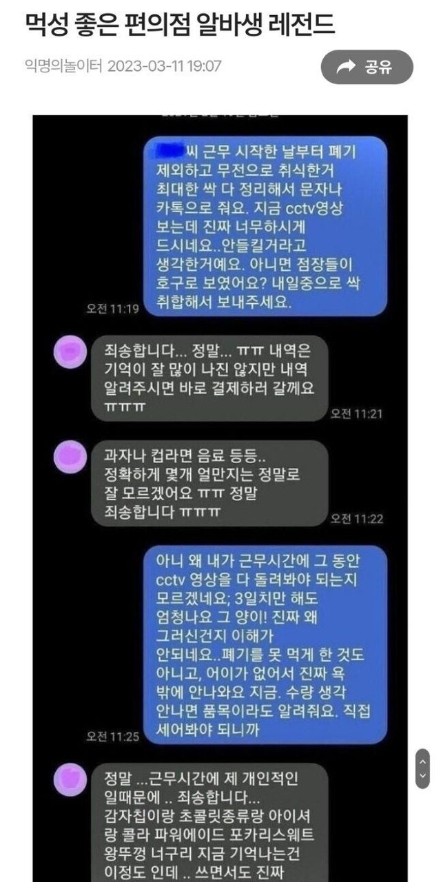 편의점 점주가 얼마 전에 겪은 진상이야기