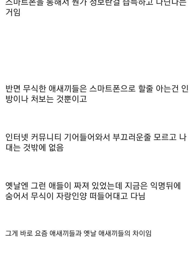 요즘 애새끼와 옛날 애새끼의 차이 …